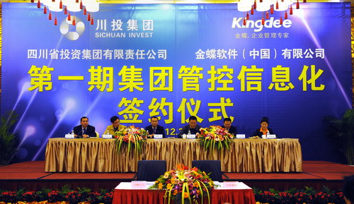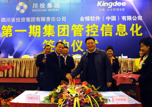 隨后,李文志、孫雁飛分別代表川投集團與金蝶公司簽署了項目建設(shè)及服務(wù)合同,標(biāo)志著川投集團第一期管控信息化建設(shè)項目正式啟動。