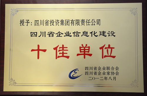 川投集團喜獲2012年度“四川省企業(yè)信息化建設(shè)十佳單位”榮譽稱號
