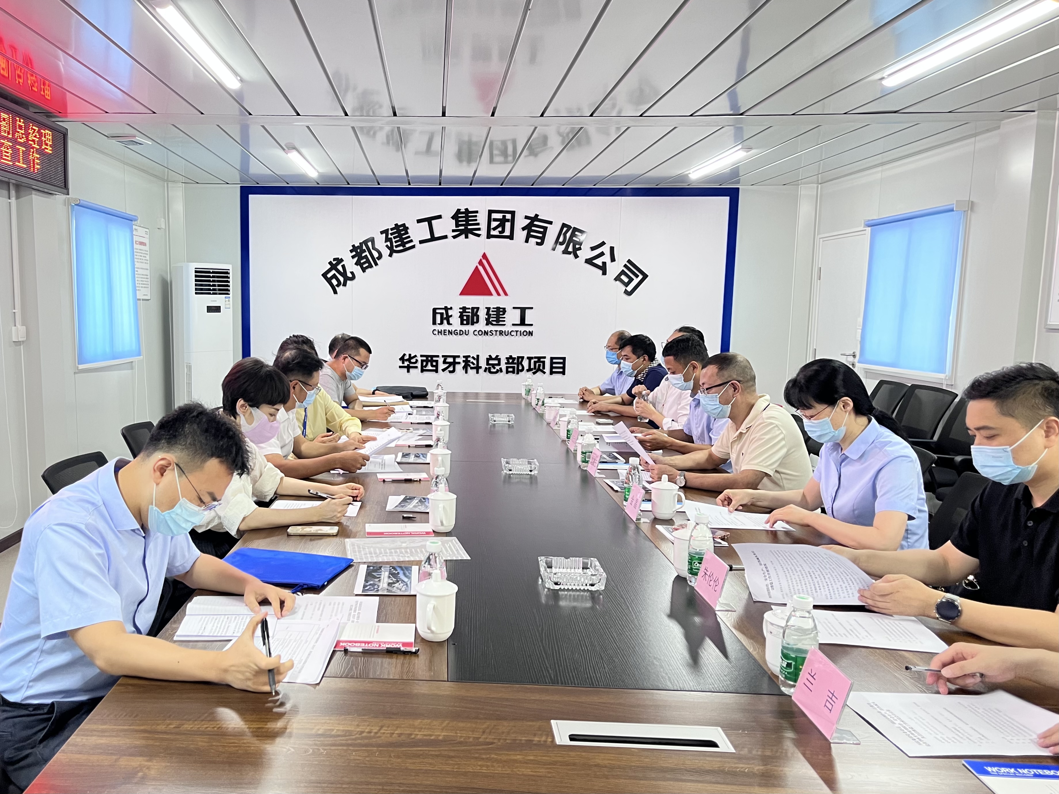 舒勇一行在華西牙科總部項目工地現(xiàn)場檢查了施工安全防范措施落實、防汛物資儲備、疫情防控應(yīng)急預(yù)案以及信訪維穩(wěn)臺賬建立情況,并聽取了相關(guān)工作匯報。