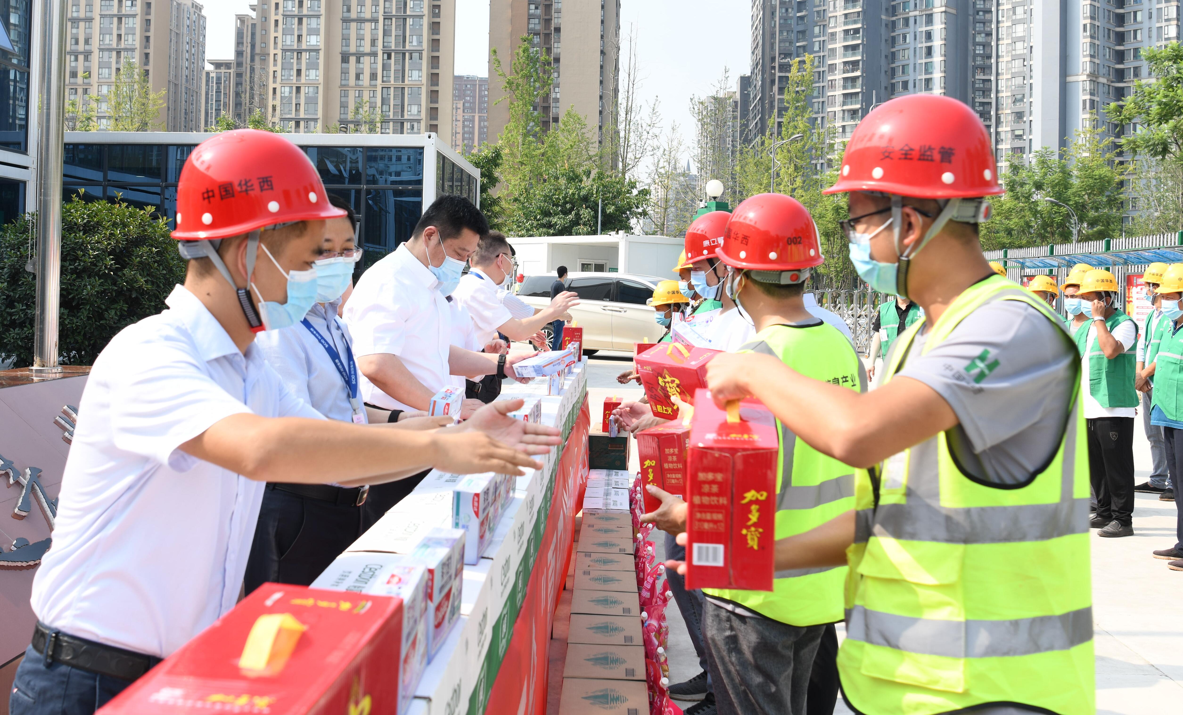 在項(xiàng)目現(xiàn)場,黃勁一行慰問了一線施工作業(yè)人員代表,代表集團(tuán)公司向一線作業(yè)人員致以親切的慰問,向大家的辛勤付出表示感謝,并送上清涼飲品和防暑慰問品。他強(qiáng)調(diào),項(xiàng)目總承包施工單位要把防暑降溫工作和勞動安全保障措施落到實(shí)處,全力落實(shí)戶外高溫作業(yè)人員的安全生產(chǎn)條件和福利保障,把對一線作業(yè)人員的關(guān)心、關(guān)愛體現(xiàn)到實(shí)際行動中,體現(xiàn)到每一個細(xì)節(jié)中。