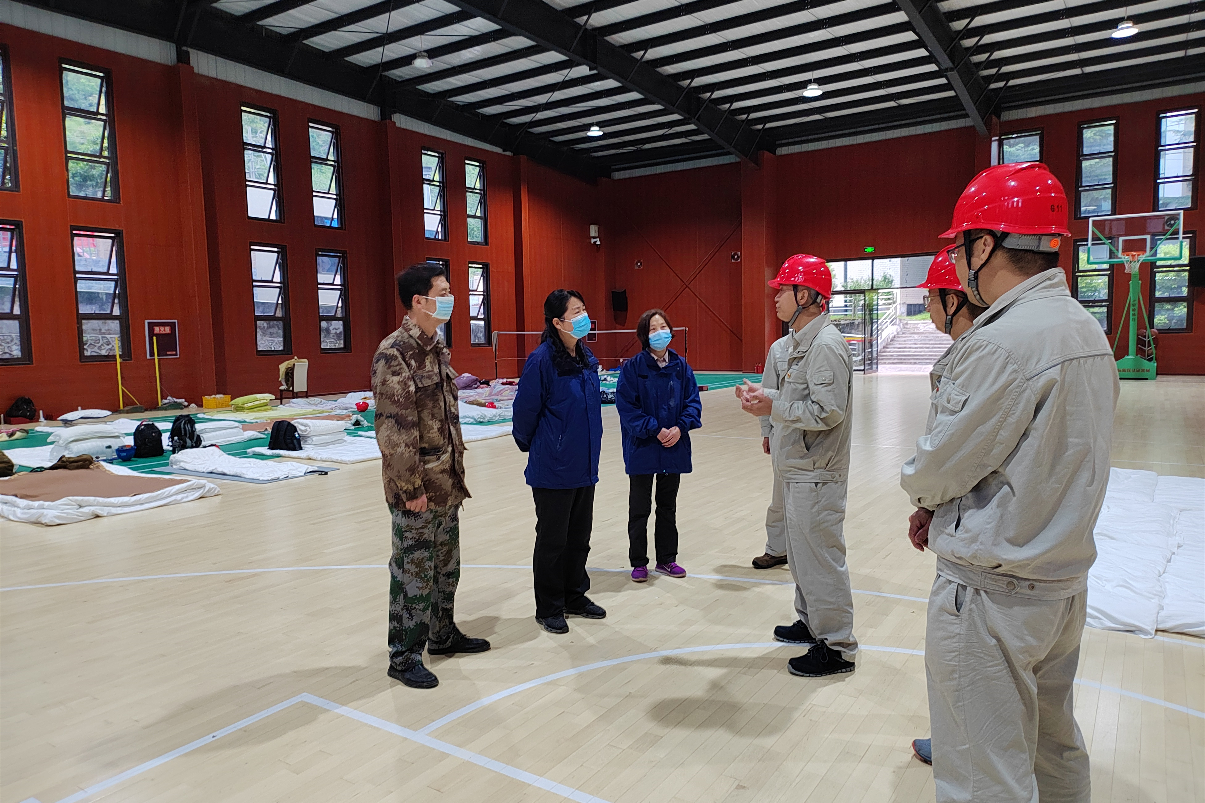 彭映梅一行到現(xiàn)場人員應(yīng)急安置點(diǎn)體育館,查看人員應(yīng)急安置情況,傳達(dá)黨中央、國務(wù)院及習(xí)近平總書記對瀘定“9.5”地震搶險(xiǎn)救災(zāi)工作的重要指示,轉(zhuǎn)達(dá)省委省政府、市委市政府對大家的關(guān)心與慰問。隨后對公司現(xiàn)場營地受災(zāi)情況進(jìn)行了實(shí)地查看,詳細(xì)了解公司電力生產(chǎn)受損情況及當(dāng)前抗災(zāi)自救工作開展情況。