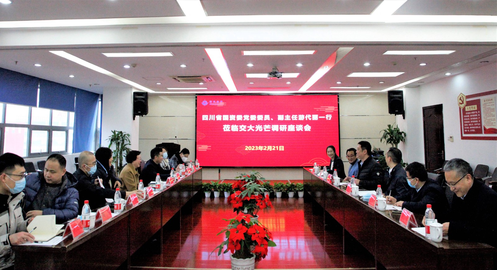 2月21日,省國資委黨委委員、副主任游代麗率隊赴交大光芒調(diào)研指導工作,省國資委巡視員符定平、財務監(jiān)督與評價處、監(jiān)督工作處、企業(yè)改革處一同參加調(diào)研。集團公司財務總監(jiān)黃勁隨同調(diào)研。