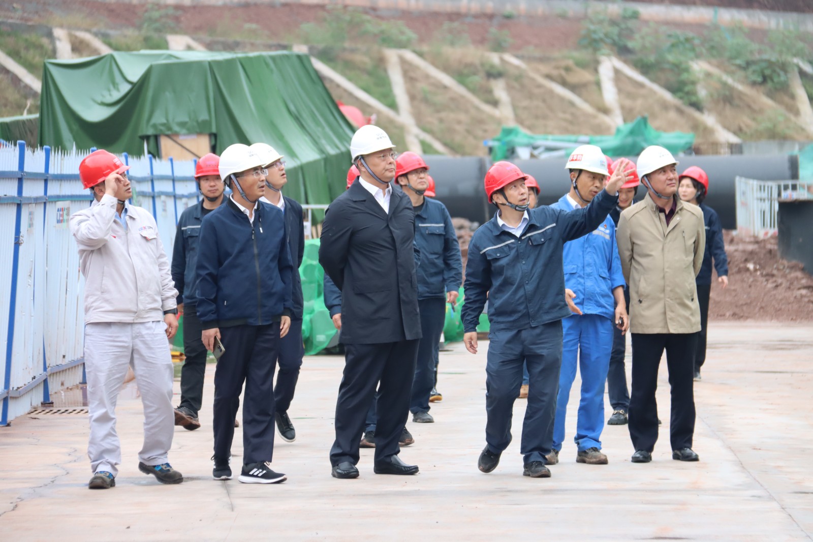 李文志一行深入項目主廠房、余熱鍋爐、輔助生產(chǎn)區(qū)等作業(yè)面實地查看資陽燃氣電站項目建設(shè)進展情況,并聽取了川投燃電、資陽氣電的工作情況匯報。