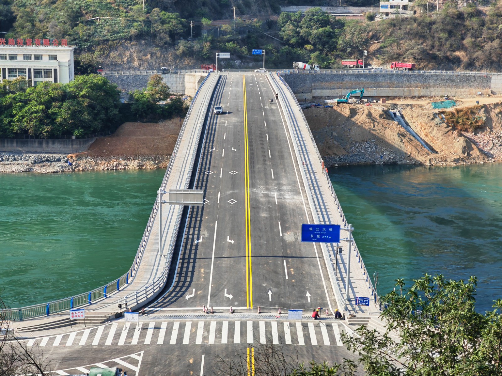 銀江大橋?qū)儆阢y江水電站配套建設(shè)項目,位于銀江水電站大壩下游1公里處,大橋左岸連接G353國道,右岸連接G227國道,是攀枝花人民期盼已久的“民生橋、幸福橋、富裕橋”。