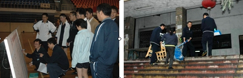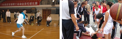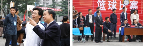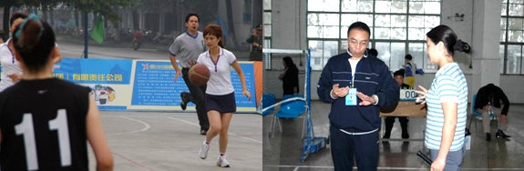 他們一方面是籃球和羽毛球裁判員,同時,所有的成員又都是田徑接力賽的裁判員,還兼趣味團(tuán)體賽裁判,有的同志還兼有開幕式的引導(dǎo)員、方陣指揮、音響師以及代表團(tuán)接待員等工作,用他們的話說,整個運(yùn)動會期間就沒有空閑的時候。