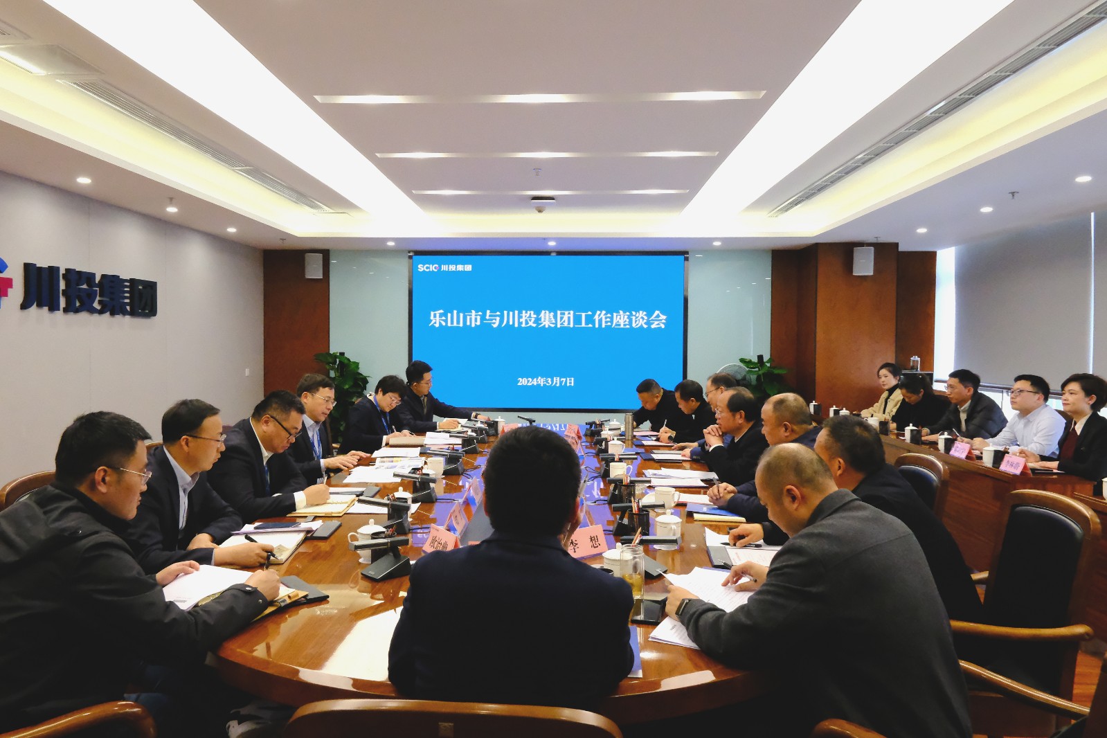 3月7日下午,川投集團與樂山市在川投大廈舉行工作座談會。樂山市委常委、市直機關工委書記、市總工會主席譚焰出席會議,集團公司黨委委員、副總經理王懷林出席并主持會議。四川省經濟合作局二級巡視員張樹華,科順控股副董事長畢利參加會議。