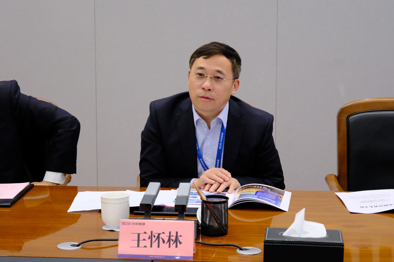 王懷林對譚焰一行表示歡迎,介紹了川投集團產業(yè)發(fā)展情況。他表示,雙方合作淵源深厚,地企血脈聯系緊密,樂山市在自然資源、人文底蘊方面具有獨特優(yōu)勢,發(fā)展空間巨大,川投集團作為省屬大型國有資本投資公司愿充分發(fā)揮自身“1+3”產業(yè)優(yōu)勢,與樂山市開展更深層次與更大范圍合作。