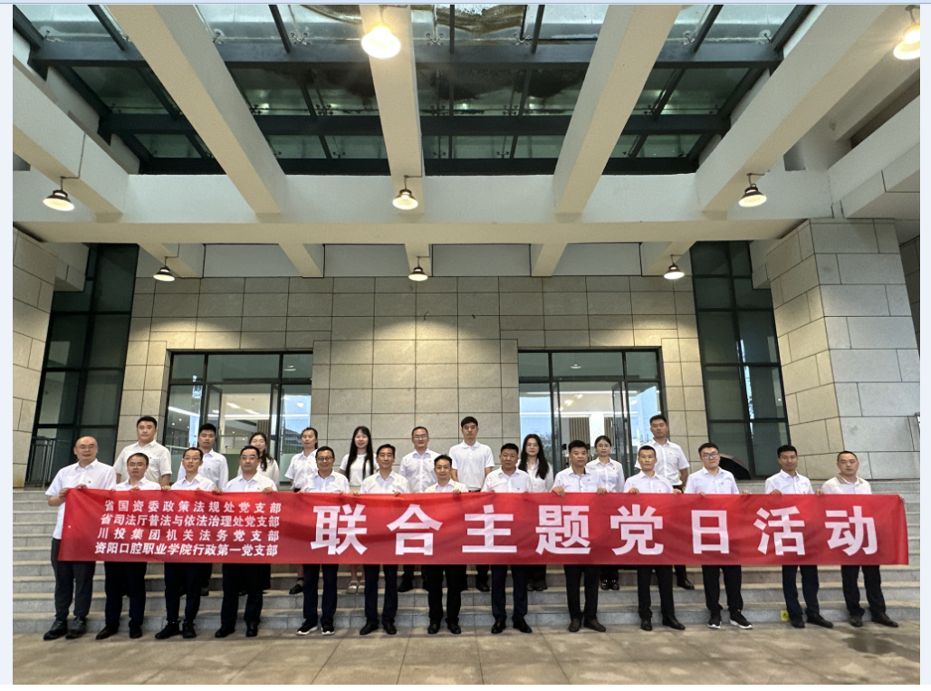 省國資委政策法規(guī)處處長鄧愛平、省司法廳普治處處長邊疆,集團(tuán)公司總法律顧問、法務(wù)風(fēng)控部部長楊帆,資陽口院黨委書記、理事長張中偉及相關(guān)30余人參加調(diào)研及主題黨日活動。