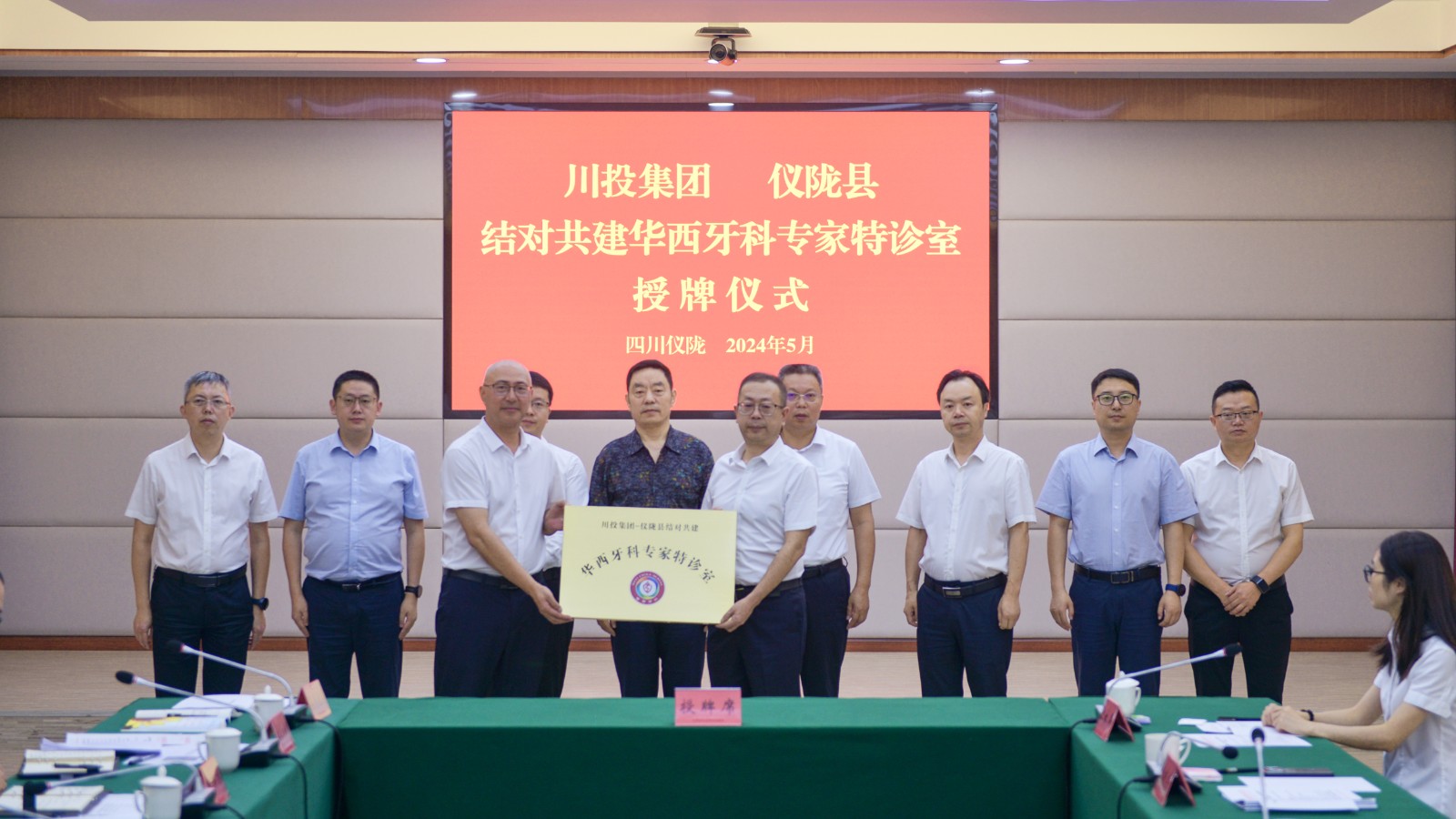 5月24日,川投集團儀隴縣結(jié)對共建儀隴縣總醫(yī)院華西牙科專家特診室授牌儀式在儀隴舉行。南充市政協(xié)副主席、儀隴縣委書記郭宗海,川投集團黨委副書記、董事鄧凱,黨委宣傳部部長何金輝等領(lǐng)導(dǎo)出席儀式。儀隴縣總醫(yī)院黨委書記張勇華西牙科黨委書記、董事長、總經(jīng)理劉凌云現(xiàn)場進行授牌。