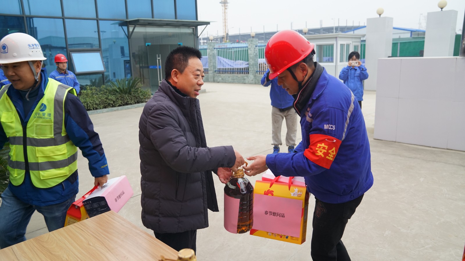 肖長青一行首先來到宏明電子所屬宏明宏科新型電子元器件及集成電路生產(chǎn)項目基地,向仍然堅守在建設現(xiàn)場的施工人員致以新春問候和祝福,并發(fā)放節(jié)日慰問品,并現(xiàn)場檢查了安全生產(chǎn)管理工作落實情況。隨后來到宏明電子本部,向技術(shù)代表致以新春問候和祝福,并發(fā)放節(jié)日慰問品。
