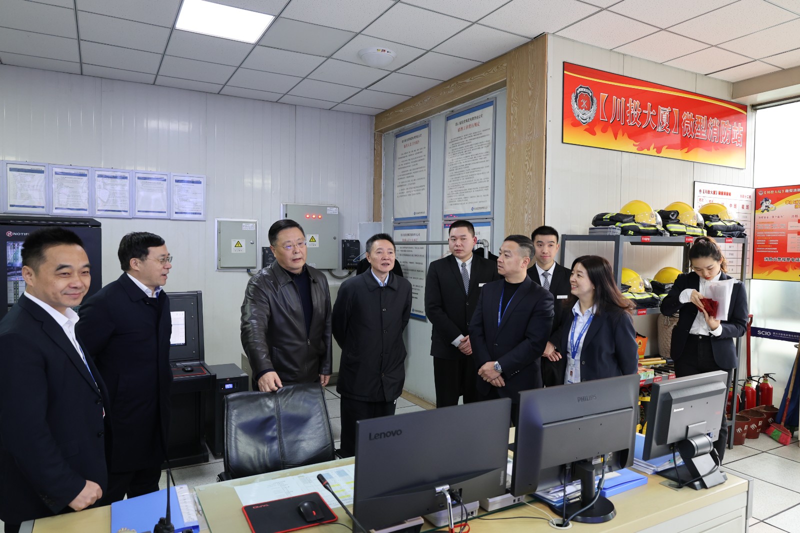 隨后,李文志一行來到了值班室,對各項設(shè)施進行了仔細的檢查,并認真聽取了值班人員對安全狀況和員工工作環(huán)境舒適度的匯報。他強調(diào),相關(guān)部門必須切實做好后勤保障工作,確保值班人員能夠有一個安心、舒適的環(huán)境。此外,李文志一行還慰問了專項接待人員,鼓勵大家繼續(xù)保持飽滿的工作熱情和良好的工作狀態(tài),為集團的發(fā)展貢獻更多的力量。