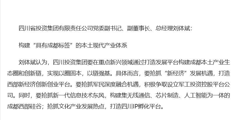 四川省投資集團(tuán)有限責(zé)任公司(簡(jiǎn)稱川投集團(tuán))是四川省人民政府授權(quán)的國(guó)有資產(chǎn)經(jīng)營(yíng)主體、重點(diǎn)建設(shè)項(xiàng)目的融資主體和投資主體之一,省國(guó)資委管理的國(guó)有獨(dú)資公司。了解更多>