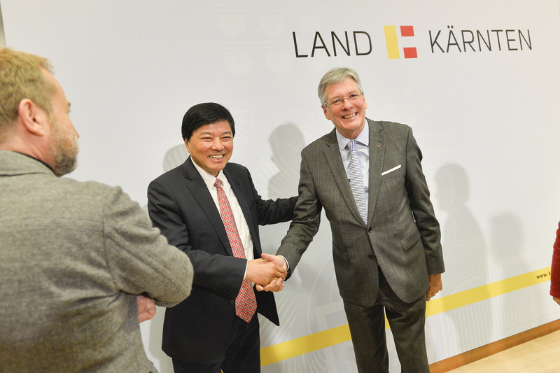 2018 sei ein sehr erfolgreiches Jahr für K?rnten gewesen, erkl?rte der Landeshauptmann. So sei es gelungen, das gr??te Wirtschaftswachstum von allen ?sterreichischen Bundesl?ndern zu erzielen. "K?rnten ist mit seiner einzigartigen Natur als Tourismusland bekannt. Ich m?chte aber auch betonen, dass 55 Prozent unserer Wertsch?pfung aus einer sauberen und zukunftsorientierten Industrie kommen. K?rnten setzt sehr stark auf Forschung und Entwicklung und verfügt gleichzeitig über ein sehr stark ausgepr?gtes Klein- und Mittelunternehmertum", so Kaiser. K?rnten sei mit seiner Lage am Schnittpunkt dreier Kulturen auch daran interessiert, Interkulturalit?t und Internationalit?t zu leben. Mit Investitionen in das Fürnitzer Logistikzentrum verfolge man das Ziel, zu einer Drehscheibe für Produkte im Alpe-Adria-Raum zu werden. Kaiser sagte der chinesischen Delegation jedwede Unterstützung seitens der Landesregierung zu, um Kooperationen mit heimischen Unternehmen zu erm?glichen. "Es freut mich und es ist wichtig, dass sie bereits gute Kontakte mit K?rntner Betrieben geknüpft haben", so Kaiser, der auch auf die europ?ische Spitzenposition K?rntens bei Erneuerbaren Energien hinwies. Zum Abschluss des Besuchs gab es für die chinesischen Delegationsmitglieder Craigher Schokolade aus den H?nden des Landeshauptmanns. "Es würde mich sehr freuen, wenn sie beim Genuss dieser Schokolade an K?rnten und seine Menschen denken", so Kaiser.