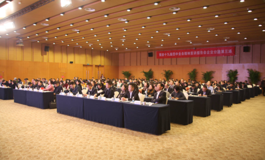 11月29日下午,省委宣講團(tuán)企業(yè)分團(tuán)黨的十九屆四中全會精神宣講第三場報告會走進(jìn)川投國網(wǎng)公司會議室。1家中央在川企業(yè)和8家省屬國有企業(yè)共計220人共聚一堂,認(rèn)真聆聽省委宣講團(tuán)成員、四川大學(xué)經(jīng)濟(jì)學(xué)院教授蔣和勝作宣講報告。