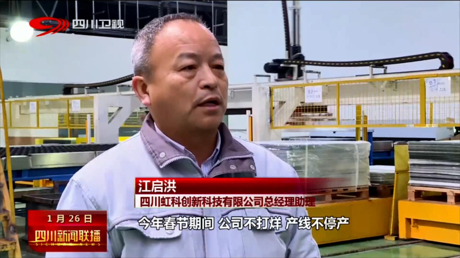 四川虹科創(chuàng)新科技有限公司總經(jīng)理助理 江啟洪: 今年春節(jié)期間,公司不打烊,產(chǎn)線不停產(chǎn),在滿負荷生產(chǎn),員工上崗率達到71%以上,我們預計2023年,產(chǎn)值產(chǎn)量較2022年增長50%以上,預計產(chǎn)值在15個億。