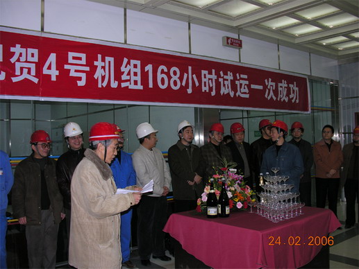 4號機(jī)組的順利投產(chǎn)試運營,使公司全體員工深受鼓舞,精神為之振奮,決心繼續(xù)發(fā)揚團(tuán)結(jié)協(xié)作、敢打硬仗、連續(xù)作戰(zhàn)精神,做好工程竣工收尾工作,爭取更大成績。