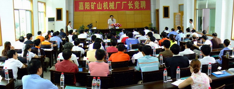 集團(tuán)公司辦公樓底樓會(huì)議室濟(jì)濟(jì)一堂,氣氛十分熱烈,嘉陽(yáng)礦山機(jī)械廠廠長(zhǎng)競(jìng)聘大會(huì)在這里隆重舉行。集團(tuán)公司總經(jīng)理范剛在會(huì)上作了動(dòng)員報(bào)告,7名競(jìng)聘者登臺(tái)演講答辯,激情洋溢,掌聲陣陣,競(jìng)聘考評(píng)組成員和來(lái)自各單位的職工代表、機(jī)關(guān)工作人員80多人作為評(píng)判者參加了競(jìng)聘會(huì)。目前競(jìng)聘計(jì)分統(tǒng)計(jì)等工作正在有序進(jìn)行中,以競(jìng)聘方式產(chǎn)生的嘉陽(yáng)礦山機(jī)械廠廠長(zhǎng)呼之欲出,在職工家屬中引起了極大反響。
