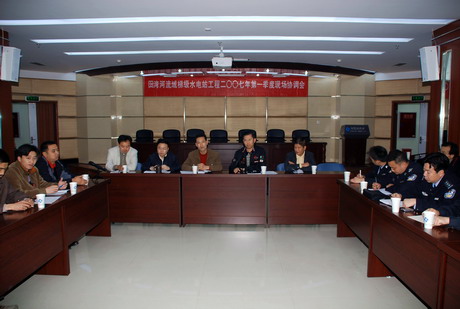 4月3日,公司在辦公樓二會(huì)議室召開田灣河流域梯級水電站工程二○○七年第一季度現(xiàn)場協(xié)調(diào)會(huì)議。公司副總經(jīng)理劉鳳鳴、總工程師唐劍虹出席了會(huì)議。石棉縣公安局局長徐炎、康定縣公安局副局長王文躍,兩縣刑警、治安大隊(duì),當(dāng)?shù)剜l(xiāng)黨委、政府、派出所負(fù)責(zé)人,公司相關(guān)部門負(fù)責(zé)人,工程設(shè)計(jì)、監(jiān)理、施工單位負(fù)責(zé)人參加了會(huì)議。