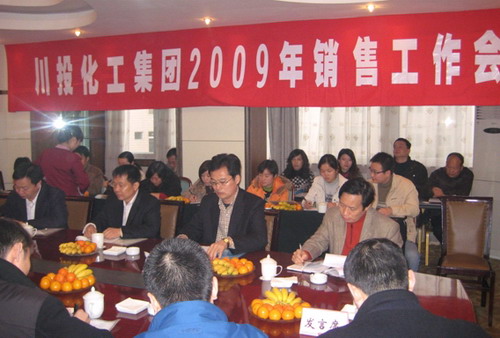 近日,川投化工2009年度銷售工作會(huì)在成都太成賓館舉行。公司總經(jīng)理李曉列、副總經(jīng)理王清海、張建強(qiáng),總經(jīng)理助理董德明及銷售部全體工作人員共計(jì)30余人參會(huì)。會(huì)議由銷售部部長丁文平主持,