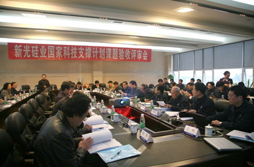 2009年3月12日,由中國電子材料行業(yè)協(xié)會組織召開的“新光硅業(yè)國家科技支撐計劃課題驗收評審會”在我公司順利舉行。評審專家組由:電子材料行業(yè)協(xié)會半導體材料分會秘書長朱黎輝、中國可再生能源學會教授級高工趙玉文、清華大學教授陳皓明等共計10位專家組成。國家科技部高新技術發(fā)展及產(chǎn)業(yè)化司材料處調(diào)研員李寶山、國家科技部高新技術發(fā)展及產(chǎn)業(yè)化司材料處吳椿輝、電子材料行業(yè)協(xié)會主任魯瑾、電子材料行業(yè)協(xié)會李清巖、四川省科技廳巡視員譚開林、四川省科技廳高新處調(diào)研員程毅敏、樂山市副市長周勇、樂山市科技局局長郭捷,以及我公司領導班子成員出席了會議。會議由電子材料行業(yè)協(xié)會秘書長袁桐主持。