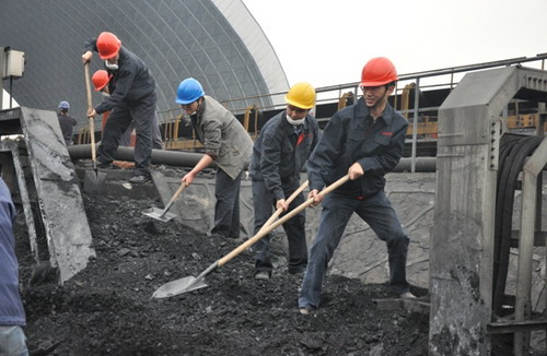 從去年底至今,川南發(fā)電公司共組織了近100萬(wàn)噸電煤進(jìn)廠,這些煤炭在廠內(nèi)煤場(chǎng)堆放時(shí),由于數(shù)量龐大且全部用汽車運(yùn)輸,煤車進(jìn)場(chǎng)時(shí)反復(fù)碾壓使煤堆邊坡垮塌,加上電纜架因設(shè)計(jì)位置限制,部分煤炭覆蓋在電纜上。隨著夏季臨近,瀘州氣溫逐漸升高,加上電纜運(yùn)行時(shí)的熱量和煤炭具有自燃的特性,對(duì)電纜的安全造成了不可忽視的隱患。公司總經(jīng)理李勝章在巡視現(xiàn)場(chǎng)時(shí)發(fā)現(xiàn)了這項(xiàng)隱患,立即要求職能部門著手消除,并將其作為一項(xiàng)重要整改項(xiàng)目,補(bǔ)充進(jìn)公司今年的春季安全大檢查工作中。針對(duì)公司人員緊張、難以集中一線職工進(jìn)行整治的實(shí)際,李總要求各部門組織管理人員突擊排險(xiǎn),并親自帶隊(duì)落實(shí),帶領(lǐng)公司30余名管理人員來(lái)到煤場(chǎng),緊張奮戰(zhàn)兩個(gè)半小時(shí),用鐵鏟一鏟一鏟將覆蓋在電纜上的數(shù)十噸煤炭清理干凈,消除了這項(xiàng)隱患。