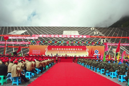 2009年8月28日,在川投田灣河公司誕辰七周年之際,四川省田灣河流域梯級水電站全部投產(chǎn)發(fā)電慶典在仁宗海大壩前隆重舉行。省國資委副主任梁志倉、成都電監(jiān)辦專員張健、省國資委產(chǎn)權(quán)處處長舒仕能、川投集團(tuán)總經(jīng)理郭勇、省政協(xié)經(jīng)委副主任、原川投集團(tuán)總經(jīng)理秦萬祥、雅安市市委常委、秘書長、市總工會主席楊凱、甘孜州州政府副秘書長易武,省電力公司、省安監(jiān)局、成都電監(jiān)辦、省建行、川投集團(tuán)、川投能源、甘孜州、雅安市、康定縣、石棉縣、草科鄉(xiāng)、田灣鄉(xiāng)的領(lǐng)導(dǎo)以及工程建設(shè)各參建單位的領(lǐng)導(dǎo)、來賓和建設(shè)者六百余人共同參加了慶典。慶典活動由川投集團(tuán)副總經(jīng)理蔣國俊主持。