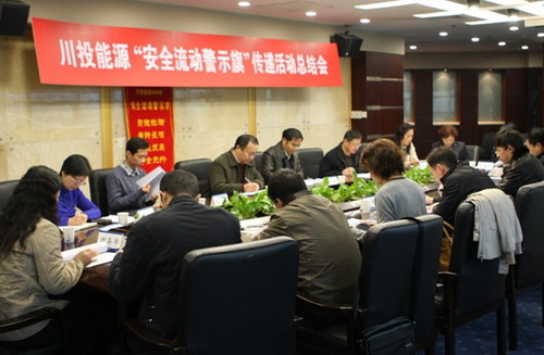 12月10日上午,川投能源“防微杜漸,警鐘長鳴,企業(yè)發(fā)展,安全先行”的安全流動警示旗在公司本部及六個所屬企業(yè)依次傳遞結(jié)束后,順利回到了公司傳遞活動總結(jié)會現(xiàn)場,為期半年的以安全警示旗幟為載體的2009年度安全教育活動畫上了圓滿的句號。