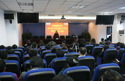 近日,為配合抓好“百安”活動,進一步增強職工的安全意識,川投峨鐵公司在十樓會議室舉行了以“安全在我心中”為主題的演講比賽。公司領(lǐng)導(dǎo)及各單位相關(guān)負責(zé)人和部分職工共計90余人觀看了比賽。
