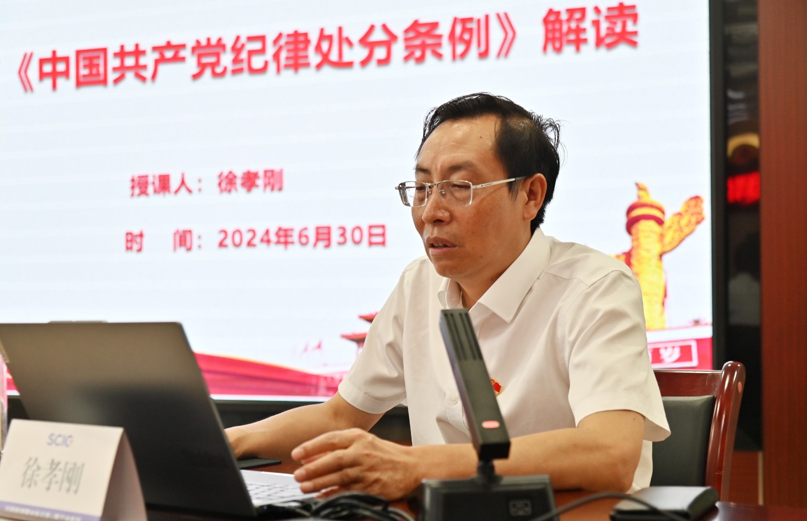 徐孝剛首先帶領(lǐng)全體黨員重溫入黨誓詞,讓每一位黨員再一次接受心靈洗禮,提升黨員黨性,堅定理想信念。在黨課中,徐孝剛對新修訂的《中國共產(chǎn)黨紀(jì)律處分條例》主要內(nèi)容和修訂重點進行了解讀,結(jié)合案例以及工作實際對“六項紀(jì)律 ”進行了深刻闡述;對省委十二屆五次全會精神進行了宣講,從會議提出的總體目標(biāo)、主要任務(wù)和要求進行了解讀,并提出了公司貫徹落實會議精神的重要舉措。