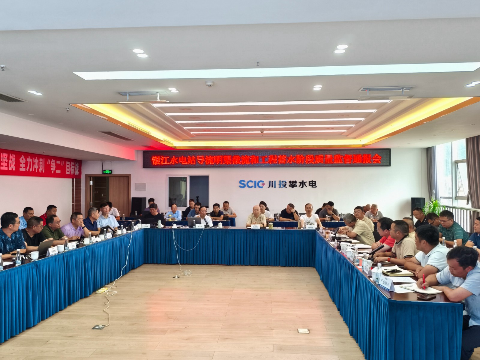 9月21,在進(jìn)行多次檢查和交流后,專家組組長(zhǎng)劉學(xué)鵬主持召開了銀江水電站導(dǎo)流明渠截流和工程蓄水階段質(zhì)量監(jiān)督通報(bào)會(huì),攀水電公司領(lǐng)導(dǎo)、各部門負(fù)責(zé)人及各參建單位負(fù)責(zé)人共40余人參加會(huì)議。專家組與各參建單位進(jìn)行了充分的討論并交換意見,形成了銀江水電站導(dǎo)流明渠截流和工程蓄水階段質(zhì)量監(jiān)督報(bào)告。報(bào)告指出,截至目前,與導(dǎo)流明渠截流及工程蓄水相關(guān)的土建工程、金屬結(jié)構(gòu)工程、安全監(jiān)測(cè)工程基本完成,剩余尾工及消缺處理等工作已有計(jì)劃安排并在抓緊施工;導(dǎo)流明渠截流及工程蓄水組織機(jī)構(gòu)已建立,導(dǎo)流明渠截流及工程蓄水技術(shù)要求已提交,實(shí)施方案完成初稿編制,部分技術(shù)文件正在完善中。銀江水電站具備擇機(jī)進(jìn)行導(dǎo)流明渠截流及工程蓄水條件。