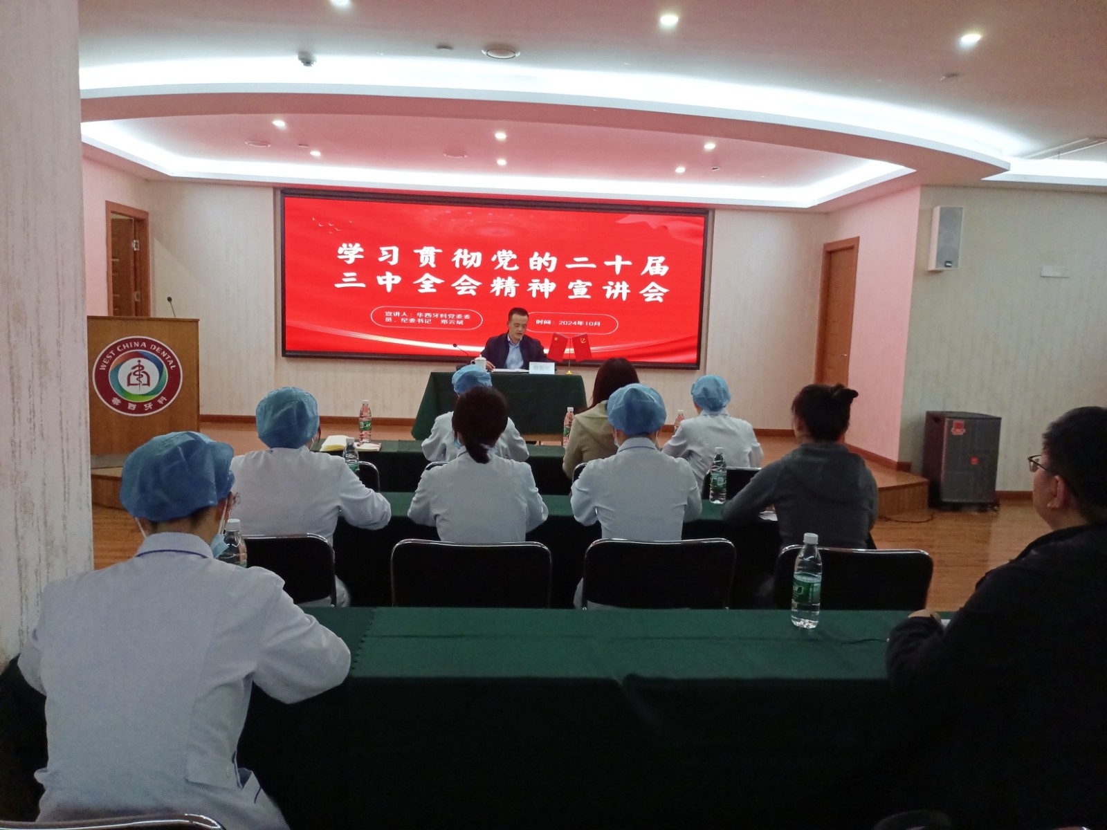 10月11日,華西牙科黨委委員、紀委書記鄧云斌赴重慶華西牙科醫(yī)院開展學(xué)習(xí)貫徹黨的二十屆三中全會暨省委十二屆六次全會精神專題宣講,重慶華西牙科醫(yī)院全體黨員、團員參加。