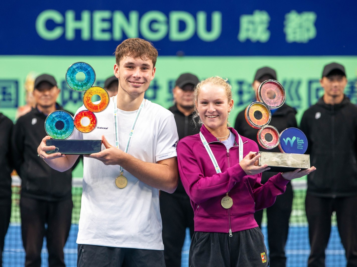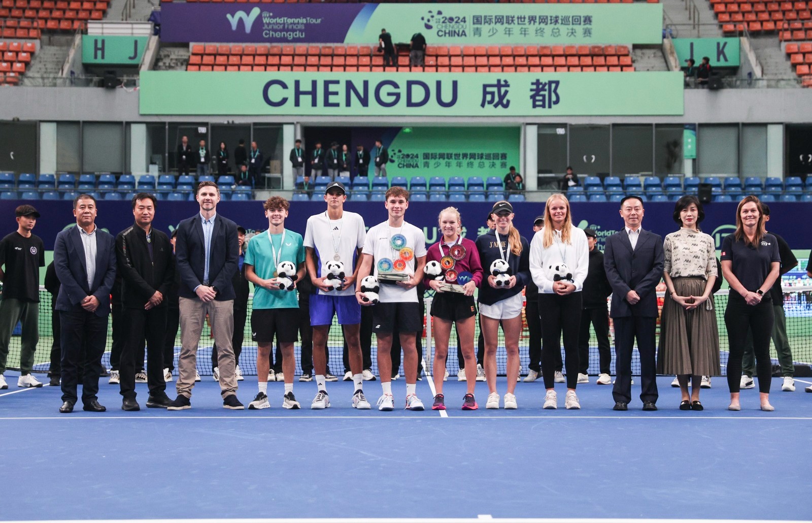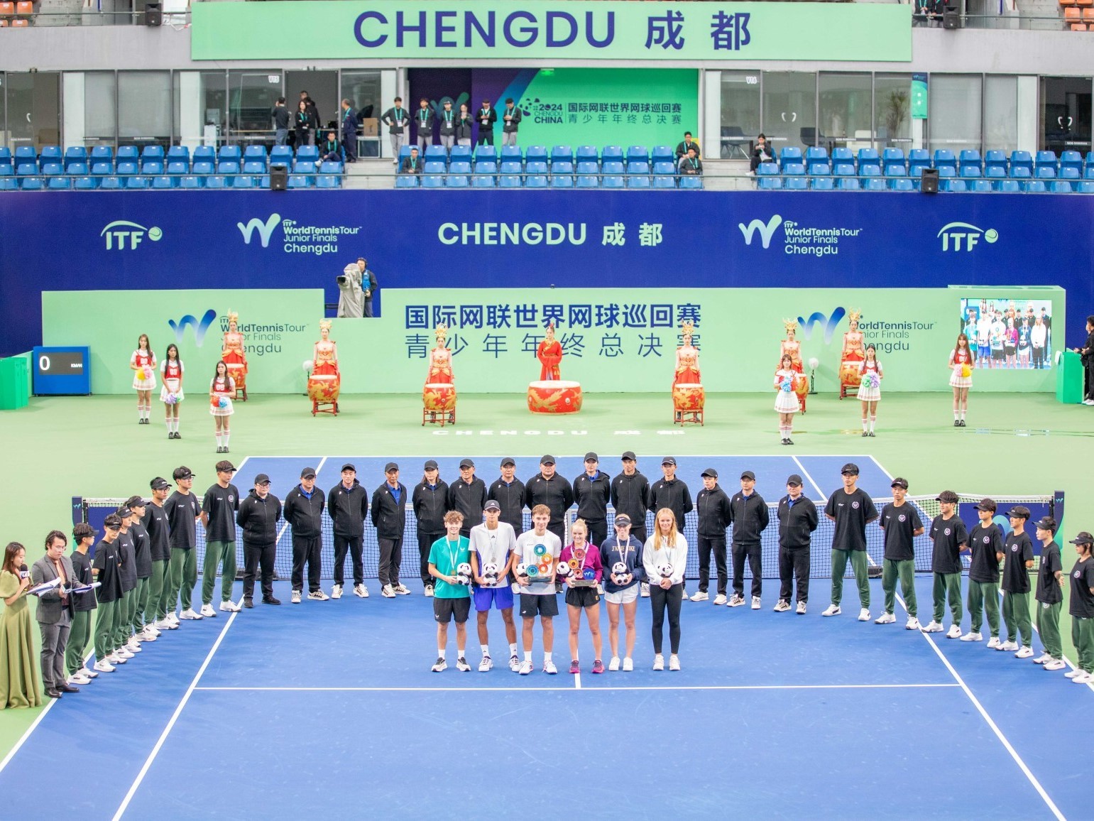 10月20日,2024國際網(wǎng)聯(lián)世界網(wǎng)球巡回賽青少年年終總決賽在川投國網(wǎng)公司中心賽場精彩上演,至此,為期五天的比賽圓滿收官。國際網(wǎng)聯(lián)青少年賽事負(fù)責(zé)人馬特·拜福德,國際網(wǎng)聯(lián)青少年委員會委員、中國網(wǎng)球協(xié)會副秘書長周文學(xué),成都市體育局機(jī)關(guān)黨委書記楊慎微,成都市雙流區(qū)文化廣電體育和旅游局副局長柯亮,川投國網(wǎng)公司黨委書記、執(zhí)行董事白蕾,國際網(wǎng)聯(lián)青少年賽事高級經(jīng)理凱瑟琳·米奇等嘉賓出席頒獎儀式。