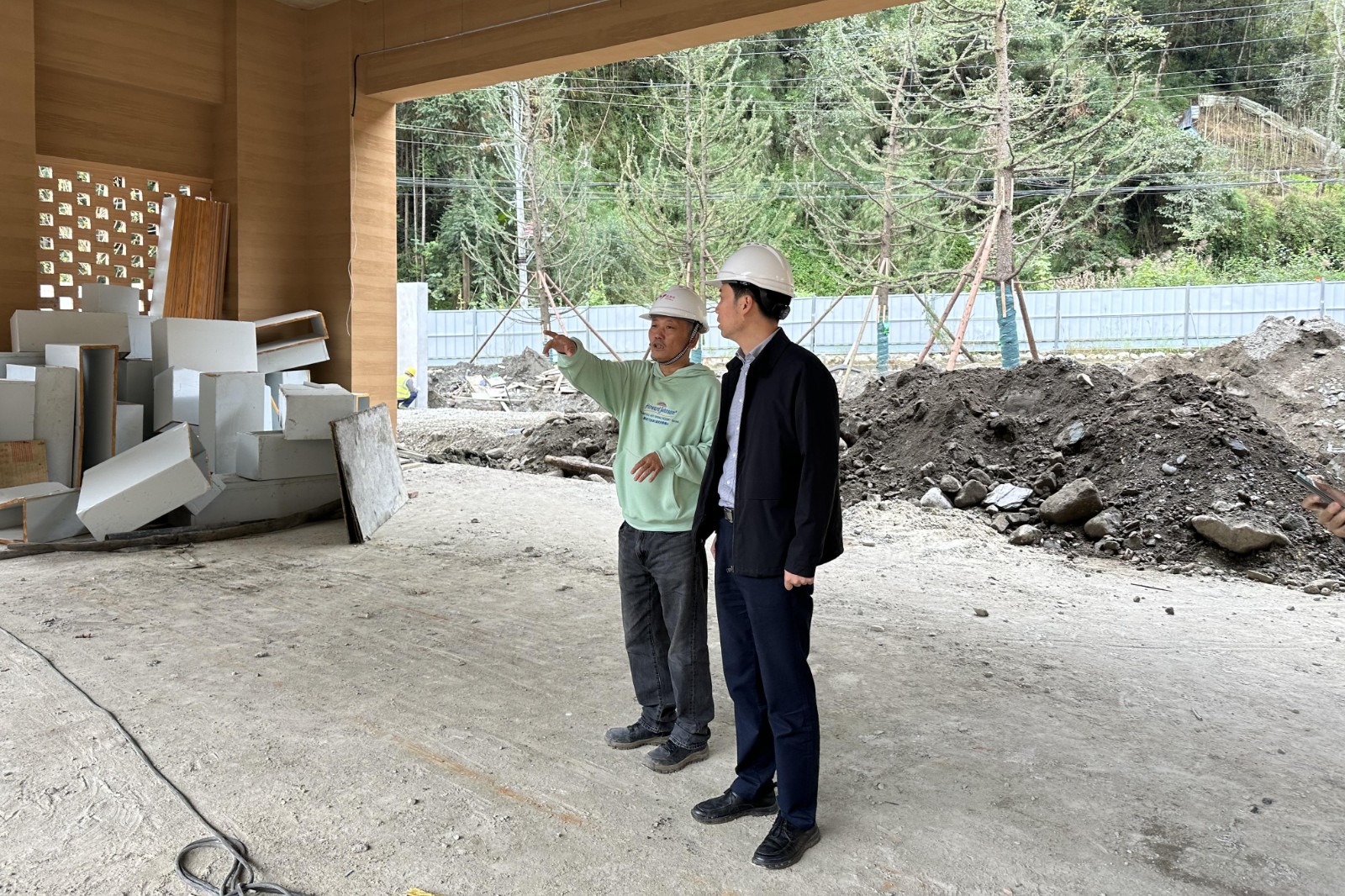 10月22日,石棉縣縣委副書記、縣長張瑜鋒到田灣河公司所屬旅游公司草科溫泉特色小鎮(zhèn)一期項目建設現場調研。