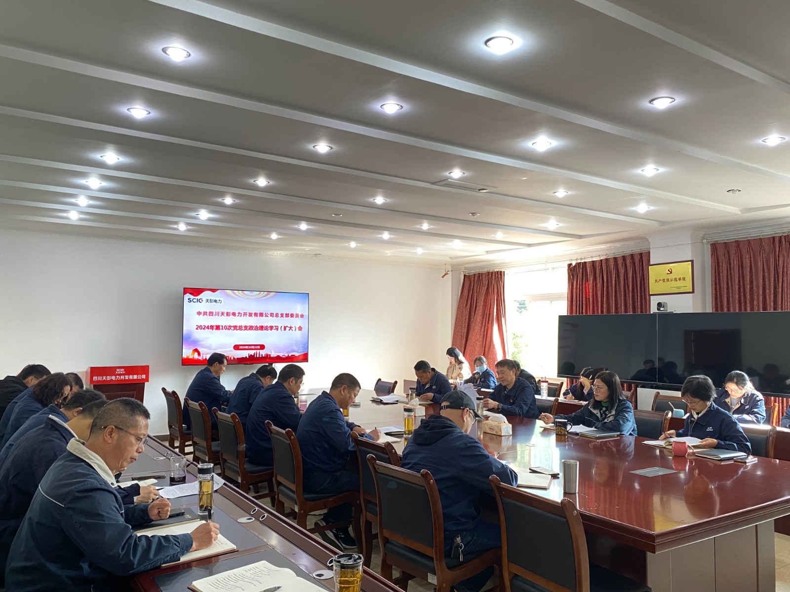 10月22日,川投能源天彭電力黨總支召開2024年第10次黨總支政治理論學(xué)習(xí)(擴(kuò)大)會(huì)議,公司領(lǐng)導(dǎo)班子成員圍繞“深入學(xué)習(xí)貫徹省委十二屆六次全會(huì)精神,以改革助推黨建和安全生產(chǎn)經(jīng)營開新局譜新篇”主題,結(jié)合各自分管領(lǐng)域和工作實(shí)際開展交流研討,并提出具體思路舉措。會(huì)議由公司黨總支書記、執(zhí)行董事、總經(jīng)理劉紅兵主持,公司領(lǐng)導(dǎo)班子、黨員干部及關(guān)鍵崗位人員參加學(xué)習(xí)會(huì)。