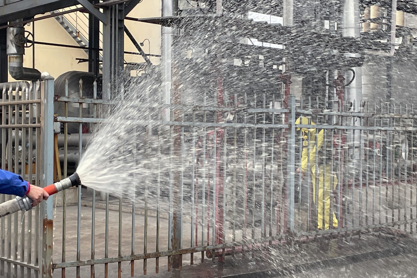 “呼叫巡檢,尿素區(qū)水解器C氨氣泄漏,A、B測點的濃度值均超過報警值,請穿戴好防護用品進入尿素區(qū)進行檢查”。隨著對講機傳來急促的聲音,演習開始。面對突發(fā)情況,脫硫除灰值班員立即穿戴好防護用品,在相關人員監(jiān)護下進入尿素區(qū),檢查尿素區(qū)雨淋閥動作是否正常,并查明漏點及漏量大小,協(xié)助主值班員隔離泄漏點,為檢修工作創(chuàng)造有利條件。同時,快速啟動備用水解器,為機組供應產品氣,以保證機組安全環(huán)保運行。事故處理全程使用消防水噴霧裝置防止產品氣體擴散,將產生的廢水收集至尿素區(qū)集水坑進行集中處理?!皡R報值長,尿素區(qū)產品氣漏點已成功隔離,備用水解器已投運,現#2機可進行正常噴氨操作”,隨著電話的掛斷,本次應急演練結束。