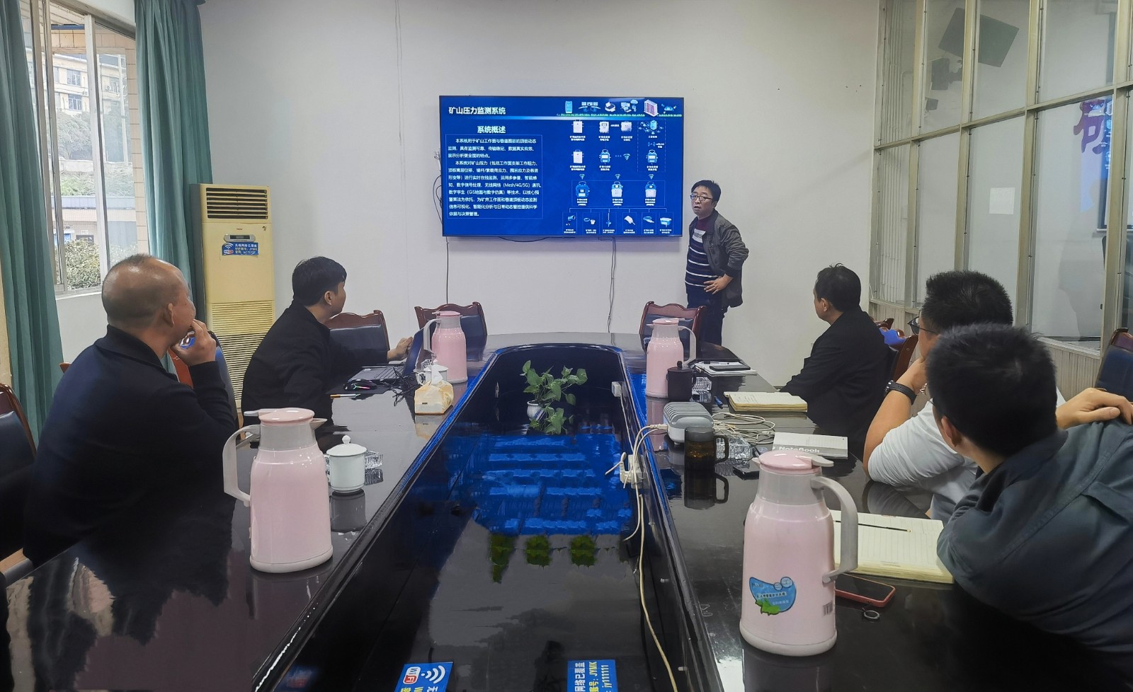 會(huì)議就煤礦頂板動(dòng)態(tài)監(jiān)測(cè)系統(tǒng)的最新工藝和最前沿技術(shù)的指導(dǎo)服務(wù)進(jìn)行探討交流。煤礦頂板動(dòng)態(tài)監(jiān)測(cè)系統(tǒng)用于礦山工作面與巷道圍巖的頂板動(dòng)態(tài)監(jiān)測(cè),具有監(jiān)測(cè)可靠、傳輸穩(wěn)定、數(shù)據(jù)真實(shí)有效、展示分析更全面的特點(diǎn)。該系統(tǒng)對(duì)礦山壓力(包括工作面支架工作阻力、頂板離層位移、錨桿/索載荷應(yīng)力、圍巖應(yīng)力及巷道形變等)進(jìn)行實(shí)時(shí)在線監(jiān)測(cè),運(yùn)用多參量、智能感知、數(shù)字信號(hào)處理、無線網(wǎng)絡(luò)(Mesh/4G/5G)通訊數(shù)字孿生(GIS地圖與數(shù)字仿真)等技術(shù),以核心預(yù)警算法為依托,為礦井工作面和巷道頂板動(dòng)態(tài)監(jiān)測(cè)信息可視化、智能化分析與日常動(dòng)態(tài)管控提供科學(xué)依據(jù)與決策管理,達(dá)到減人提效,促進(jìn)煤礦安全生產(chǎn)智能化發(fā)展的目的。
