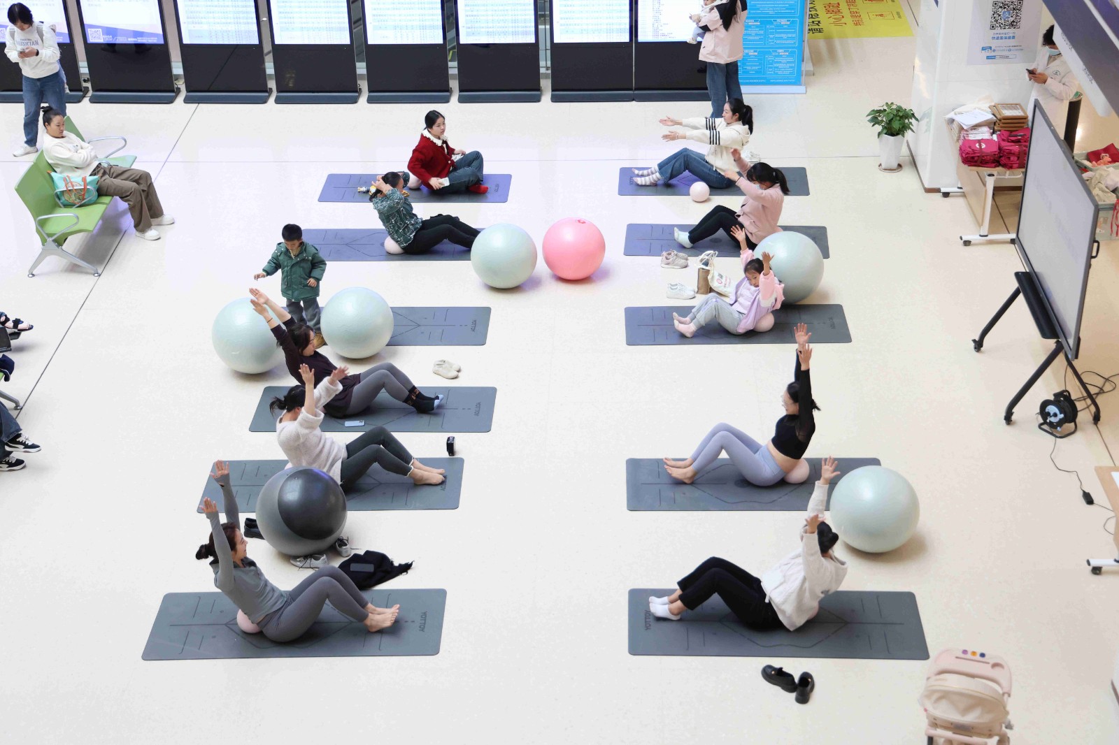活動(dòng)最后,婦產(chǎn)科護(hù)士彭瑤帶領(lǐng)到院就診的孕產(chǎn)婦、婦女兒童患者進(jìn)行了現(xiàn)場(chǎng)瑜伽體驗(yàn),伴隨著悠揚(yáng)舒緩的音樂(lè),大家全身放松,輕緩地伸展身體、緩慢呼吸。期間,彭瑤老師一對(duì)一指導(dǎo)每一位女性朋友調(diào)節(jié)呼吸、用力等,協(xié)助完成最佳瑜伽體式,以達(dá)到最佳運(yùn)動(dòng)效果。