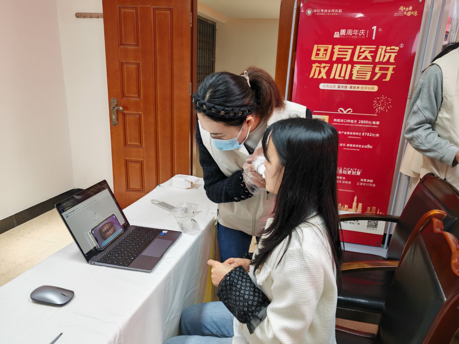 講座結(jié)束后,內(nèi)江華西牙科醫(yī)院的醫(yī)護(hù)團隊為職工們提供了一對一的口腔健康檢查服務(wù),醫(yī)護(hù)人員借助先進(jìn)的AI口掃技術(shù),快速精確地發(fā)現(xiàn)了職工們口腔內(nèi)存在的問題,同時,醫(yī)護(hù)團隊針對檢查中發(fā)現(xiàn)的問題現(xiàn)場給出了專業(yè)的治療建議,為職工提供了初步的治療方案。許多職工在接受檢查后紛紛表示,平時工作忙,很少有時間專門去醫(yī)院做口腔檢查,這次義診活動讓他們能夠及時了解自己的口腔健康狀況,做到早預(yù)防、早治療。