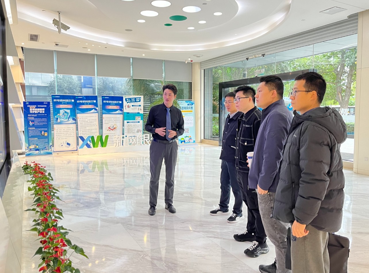 會(huì)前,川投云鏈一行參觀了新網(wǎng)銀行展示大廳,全面了解新網(wǎng)銀行的線上化產(chǎn)品特色和科技創(chuàng)新能力。