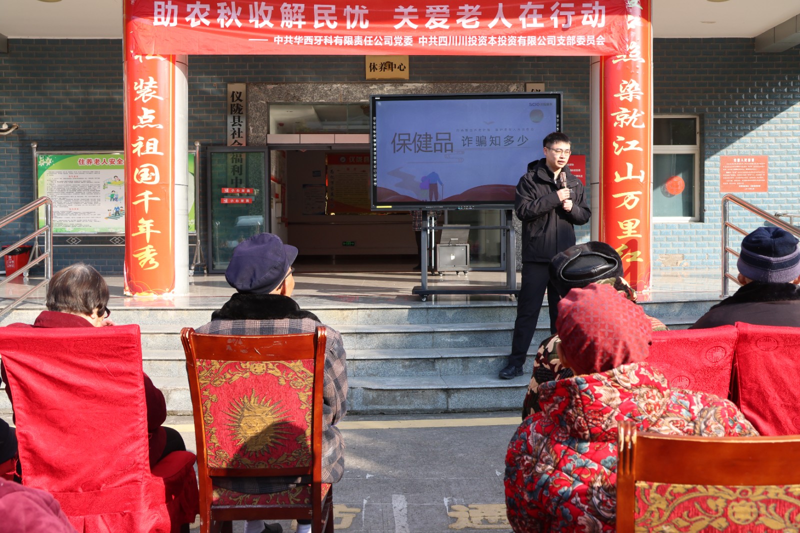 29日上午,幫扶人員來到儀隴縣老年養(yǎng)護(hù)院,圍繞“認(rèn)識(shí)保健品知識(shí)”“購買保健品注意事項(xiàng)”“保健食品廣告”等內(nèi)容開展保健品反詐宣傳講座,引導(dǎo)老年消費(fèi)者科學(xué)認(rèn)知和理性消費(fèi)保健品,防范養(yǎng)老詐騙,并為150位老人送去過冬棉襪,傳遞冬日溫暖。