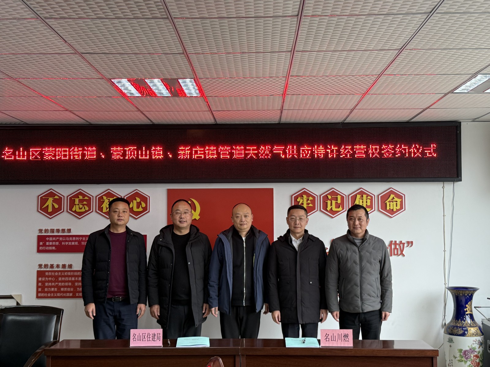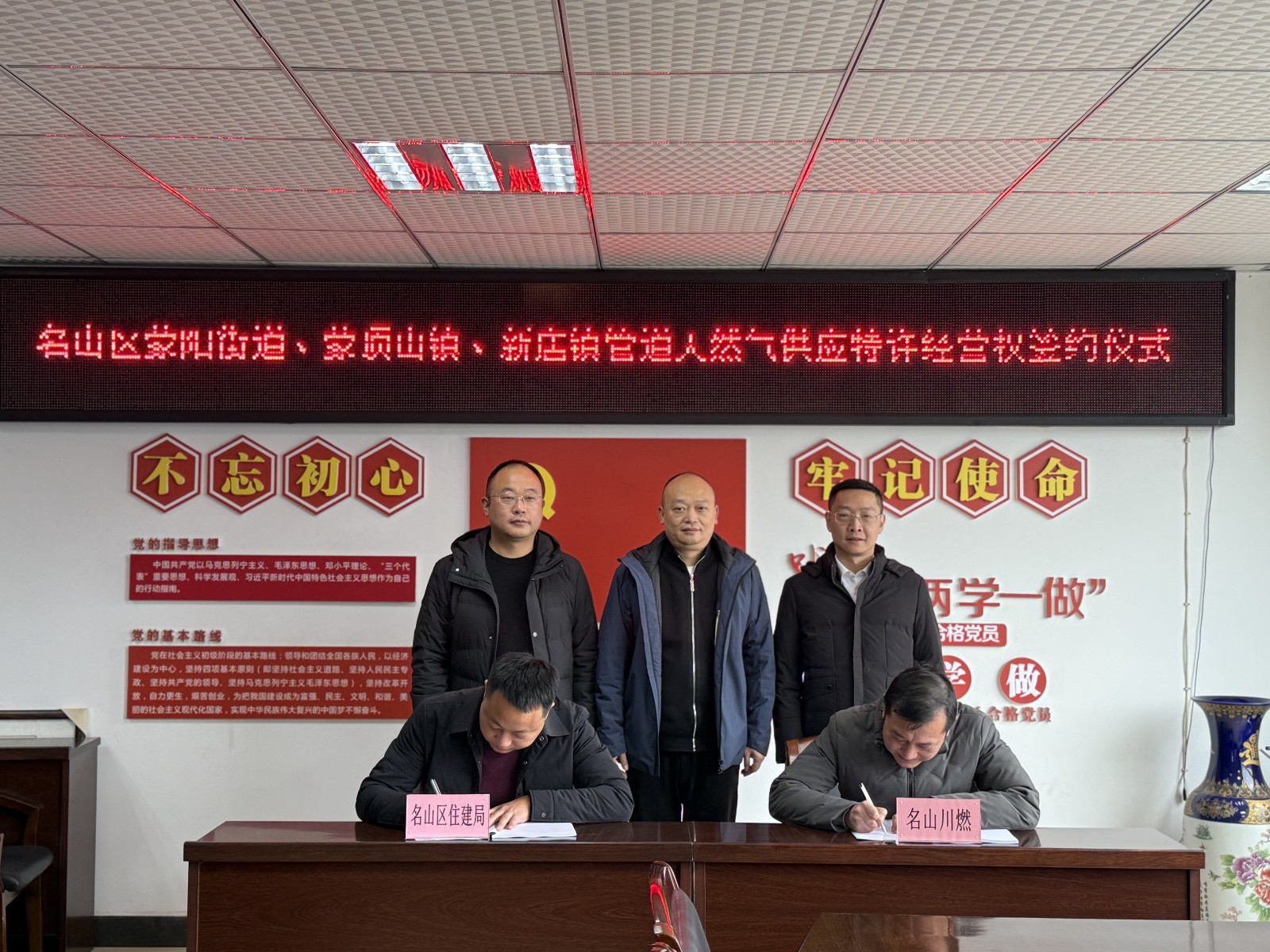 12月18日,名山區(qū)蒙陽街道、蒙頂山鎮(zhèn)、新店鎮(zhèn)管道天然氣供應特許經(jīng)營權簽約儀式在名山區(qū)住房和城鄉(xiāng)建設局舉行。名山區(qū)人民政府黨組成員、副區(qū)長譚慶,名山區(qū)住房和城鄉(xiāng)建設局黨委書記秦超俊,名山區(qū)住房和城鄉(xiāng)建設局局長彭亞雄,川投燃電黨委副書記、總經(jīng)理鄧銳,名山川燃黨支部書記、董事王鎮(zhèn)出席了簽約儀式。