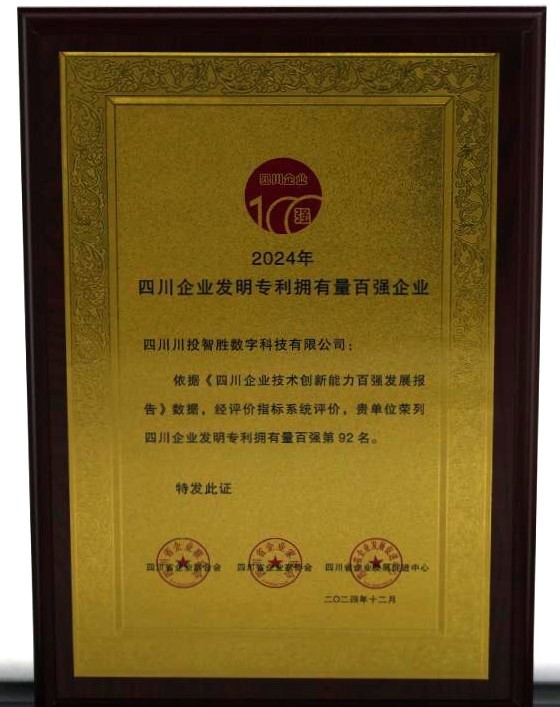 近日,四川省企業(yè)聯(lián)合會(huì)、四川省企業(yè)家協(xié)會(huì)在成都召開2024年四川企業(yè)技術(shù)創(chuàng)新發(fā)展大會(huì)。大會(huì)發(fā)布了2024年四川企業(yè)技術(shù)創(chuàng)新能力百強(qiáng)企業(yè)和2024年四川企業(yè)發(fā)明專利百強(qiáng)企業(yè)名單,其中,公司所屬川投數(shù)科(全稱:四川川投智勝數(shù)字科技有限公司,原全稱:四川川大智勝系統(tǒng)集成有限公司)上榜兩項(xiàng)百強(qiáng)名單。
