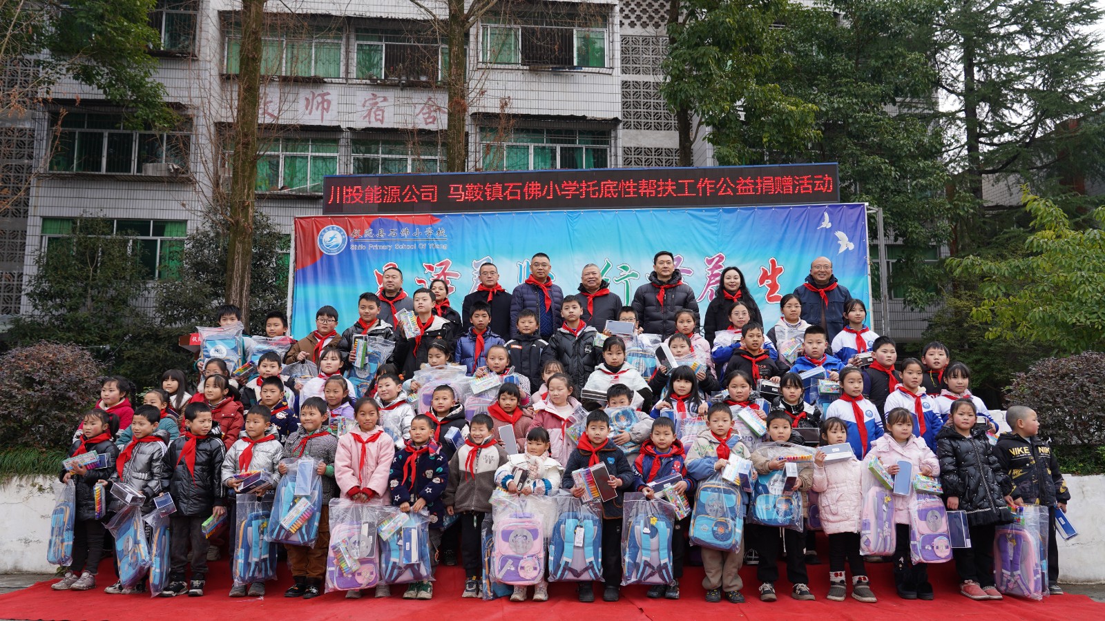 在馬鞍鎮(zhèn)石佛小學(xué),楊洪等領(lǐng)導(dǎo)為貧困學(xué)生送上體育器材、文化用具等學(xué)習(xí)生活用品,勉勵孩子們要從小樹立遠大的志向,勇敢面對困難,在逆境中堅持不懈地奮斗,努力成長為德才兼?zhèn)涞膬?yōu)秀學(xué)生,以實際行動感恩家庭的養(yǎng)育之恩,回饋社會的關(guān)愛之情。