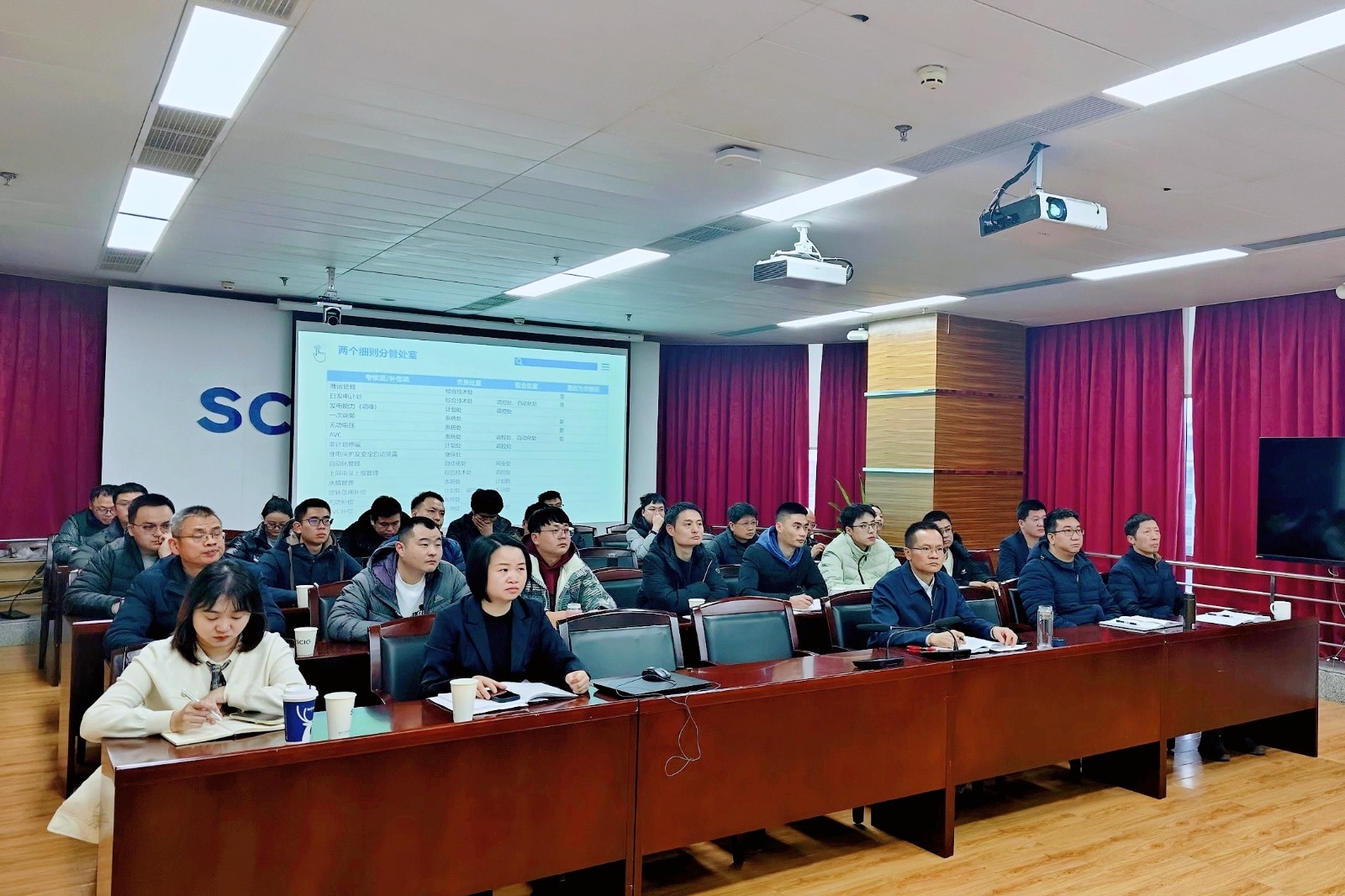 為對2024年發(fā)布的《四川省電力輔助服務管理實施細則》《四川省電力并網(wǎng)運行管理實施細則》(以下簡稱“兩個細則”)有關(guān)內(nèi)容進行全方位深入解讀,進一步優(yōu)化電力生產(chǎn)經(jīng)營管理,提升公司在電力市場的競爭力,1月10日,川投田灣河公司舉辦了“兩個細則”培訓會。會議由總工程師王勇主持。公司非生產(chǎn)值班全體人員50余人參加。