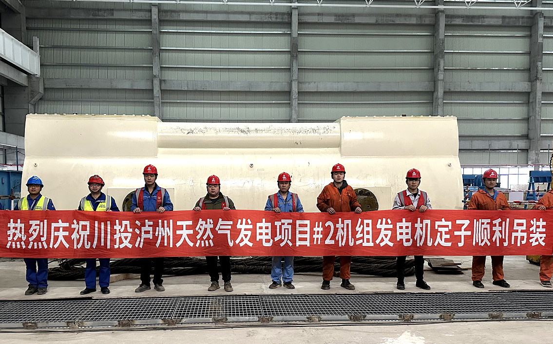 1月13日,川投瀘州天然氣發(fā)電項目2號發(fā)電機定子歷經(jīng)4天精心操作后成功就位,發(fā)電機定子吊裝圓滿完成。