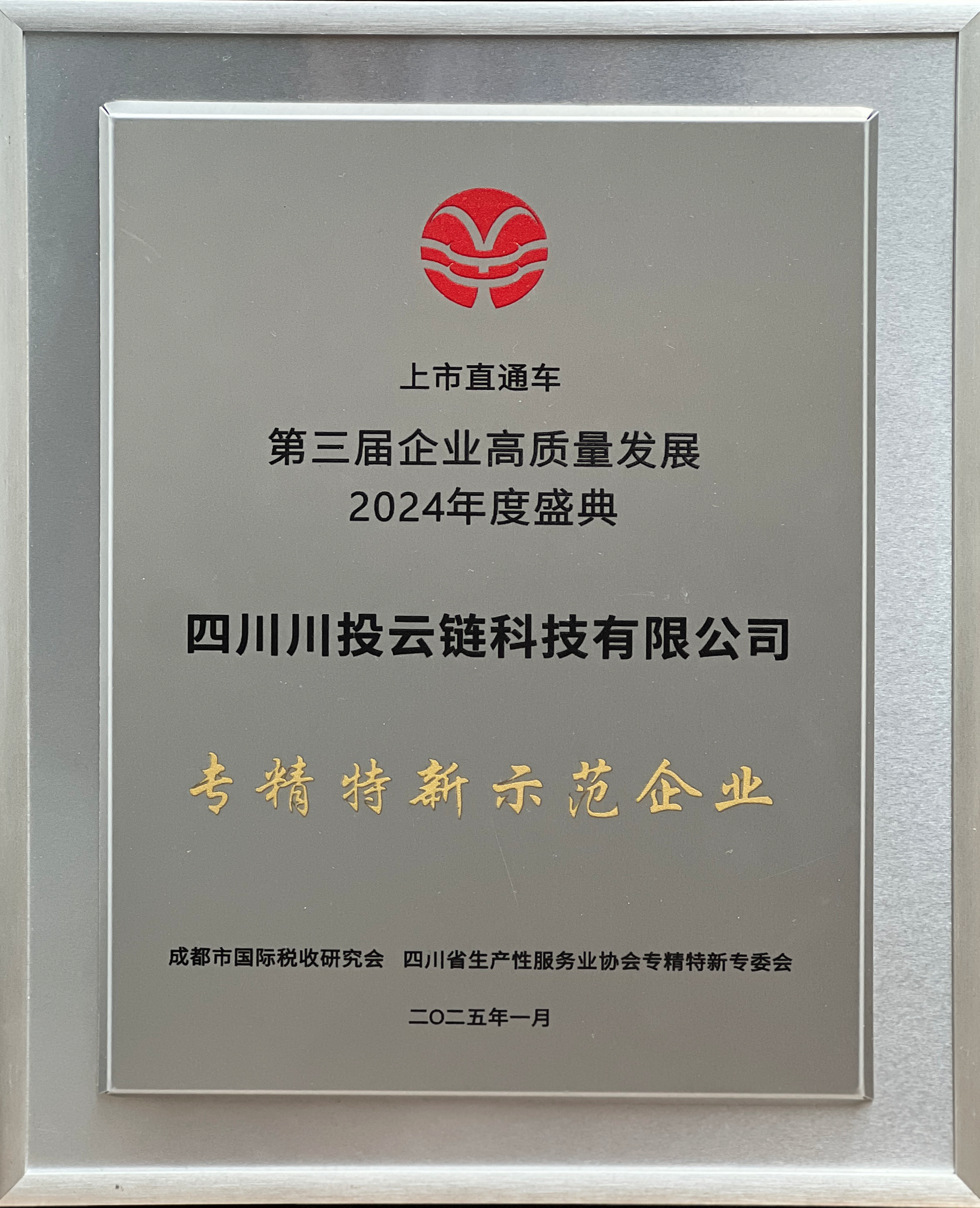 近日,2024第三屆企業(yè)高質(zhì)量發(fā)展年度盛典大會在四川廣播電視臺隆重舉辦。會上,公司所屬川投云鏈憑借在數(shù)字供應(yīng)鏈金融領(lǐng)域的科技創(chuàng)新成果及賦能優(yōu)勢,榮獲“專精特新示范企業(yè)”榮譽稱號。