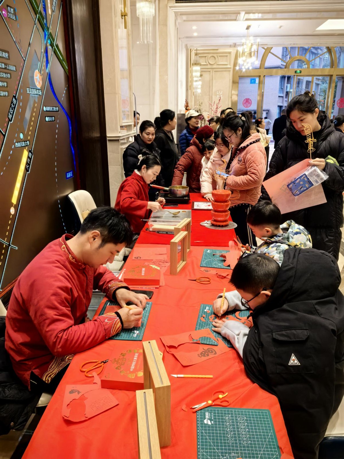 聯(lián)誼活動開展如火如荼,一是邀請具有藝術(shù)表演愛好的業(yè)主在活動現(xiàn)場演奏陶笛,并邀請書法愛好者現(xiàn)場書寫春聯(lián)、福字,贈送給居民,增添節(jié)日喜慶氣氛;二是展示剪紙、糖畫等傳統(tǒng)非遺藝術(shù),讓居民了解和體驗民間藝術(shù)的魅力,邀請專業(yè)老師現(xiàn)場剪紙和烙糖畫;三是精心布置小區(qū)環(huán)境,通過懸掛燈籠、張貼福字、纏繞彩色燈等方式將小區(qū)裝扮得煥然一新,五彩斑斕的燈飾如繁星點點照亮了小區(qū)業(yè)主的冬夜歸家之路,喜慶溫暖的“年味兒”飄滿了整個小區(qū);四是編輯精美的邀請函在各業(yè)主群提前推送,邀請小區(qū)業(yè)主積極參加。