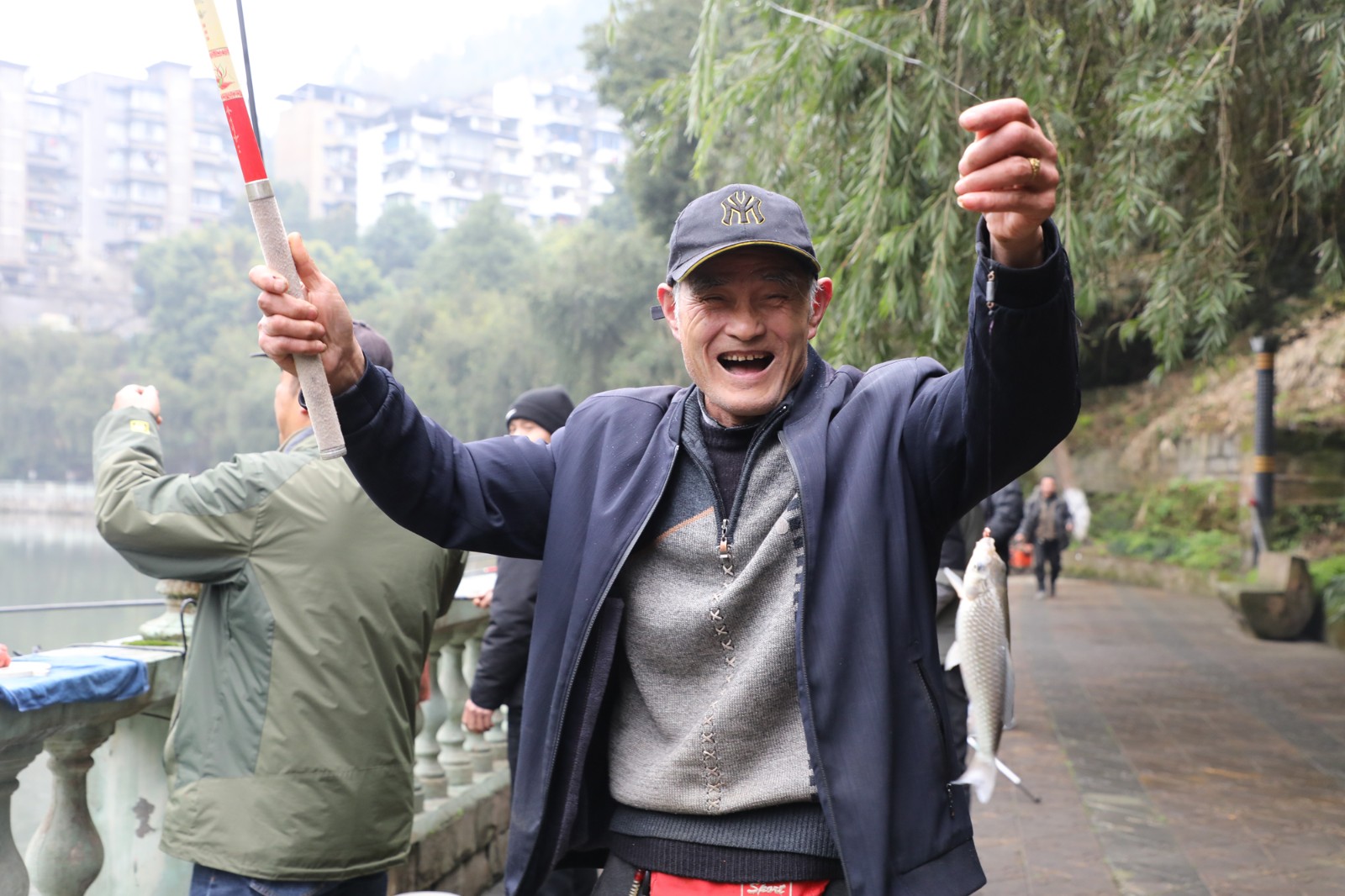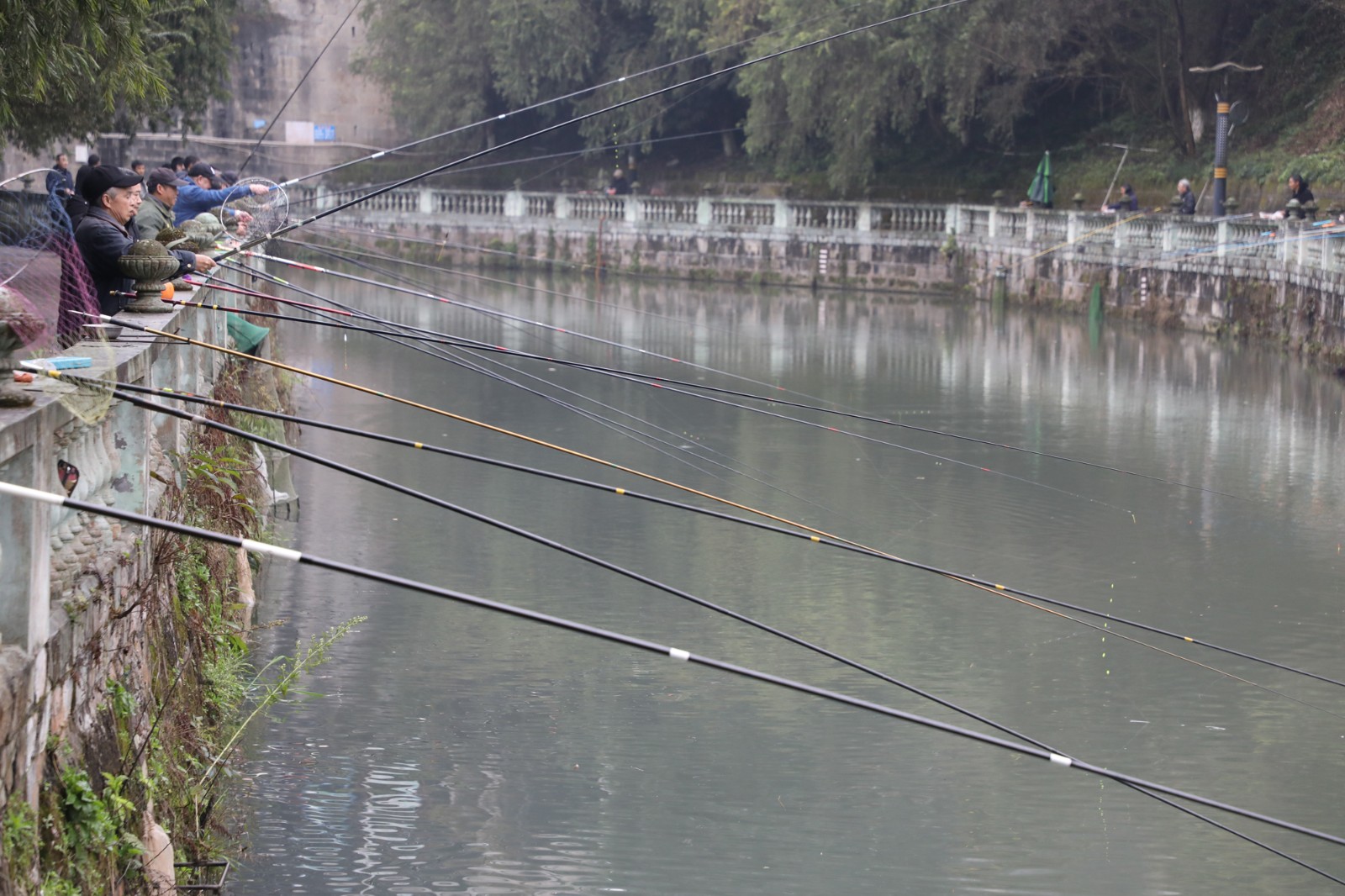 清晨,觀音溪畔微風(fēng)輕拂、楊柳依依,釣魚活動(dòng)在此舉行,河道兩岸早已圍滿了垂釣愛好者。水面波光粼粼,魚兒在水中歡快嬉戲,時(shí)不時(shí)躍出水面。釣魚者們?nèi)褙炞?,眼睛緊緊盯著浮漂?;畋膩y跳的魚兒不時(shí)被拉出水面,岸上響起陣陣歡呼,喜悅之情溢于言表。