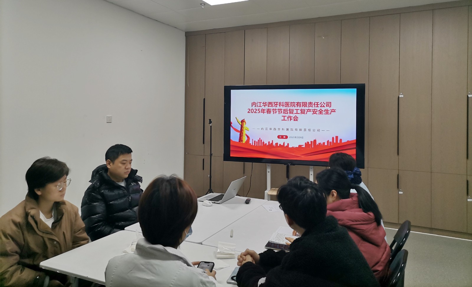 為保障內(nèi)江華西牙科醫(yī)院春節(jié)后復工復產(chǎn)工作有序推進。近日,內(nèi)江華西牙科醫(yī)院組織召開2025年春節(jié)節(jié)后復工復產(chǎn)安全生產(chǎn)工作會議,公司領導班子成員、中層管理人員共同參加。
