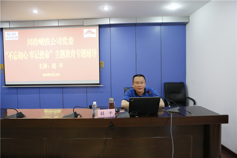 為深入學(xué)習(xí)貫徹習(xí)近平新時(shí)代中國(guó)特色社會(huì)主義思想,錘煉黨員干部忠誠(chéng)、干凈、擔(dān)當(dāng)?shù)恼纹犯?,牢牢把握“守初心、?dān)使命,找差距、抓落實(shí)”的總要求,6月14日,川投峨鐵公司黨委特邀樂(lè)山市委黨校副教授趙平到公司作“不忘初心、牢記使命”主題教育專(zhuān)題輔導(dǎo)。川投峨鐵公司在家領(lǐng)導(dǎo)、中層助理及以上管理人員、支部委員和普通黨員代表共87人參加,會(huì)議由公司黨委副書(shū)記、副總經(jīng)理陳新龍主持。